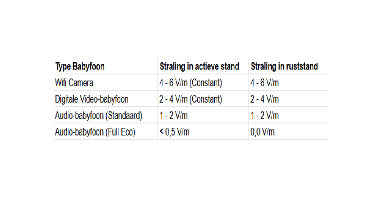 De keerzijde: De meeste video-babyfoons zenden constant een digitaal signaal uit om dat videobeeld te versturen. Dit betekent dat je baby de hele nacht in een veld van constante "pulserende" straling ligt. Bovendien werken veel camera's via wifi, wat de elektrosmog in de babykamer nog verder verhoogt.